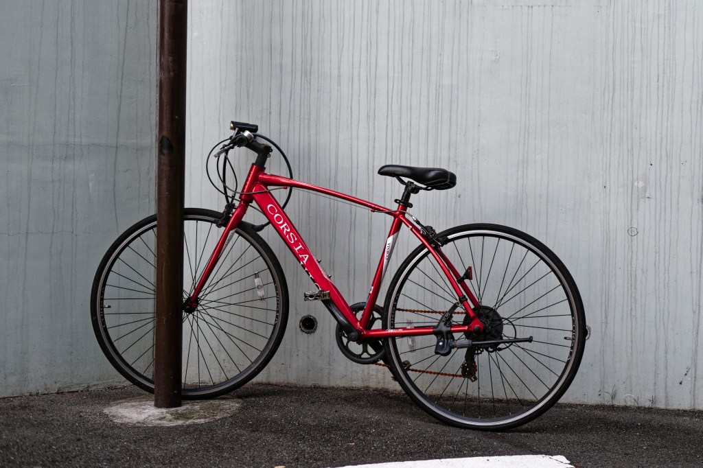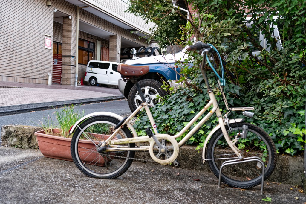 With a little research we discovered that the bicycle below is abandoned as the building dwellers do not own the bicycle, nor do they have any rights to remove the bicycle – other than reporting it to the ward office.