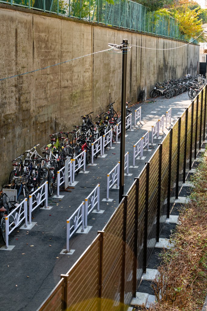 This bicycle has a clear owner as it is locked in a parking space where there is an apartment. The opening photo at the top of this article is an abandoned artifact as it is at the end of an alley and just left to rot. This is the rarest form, since ward offices throughout Tokyo have teams that go around and write citations on illegally parked bicycles. Then periodically a collection team in a truck goes around and abandoned or lost bicycles are rescued and stored in a storage area (the last picture in the series below) for a period of time, then sent for recycling.